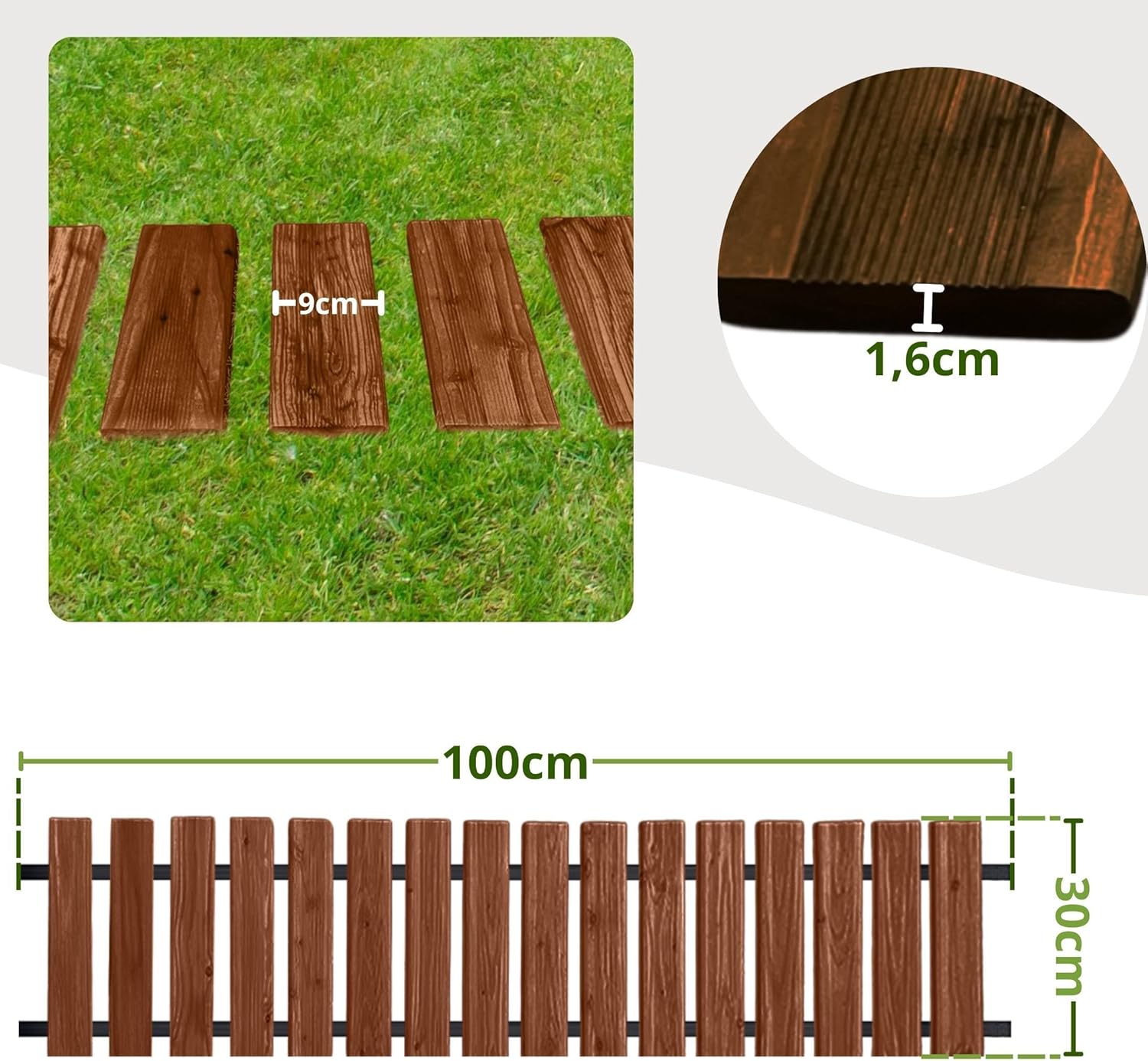 • Larch wood: The roll-up garden path is made of robust, splinter-free larch wood – weatherproof, tear and deformation resistant. Ideal as a garden path, wooden walkway, roll path, but also suitable as a deck near a pond or as a wooden border fence.