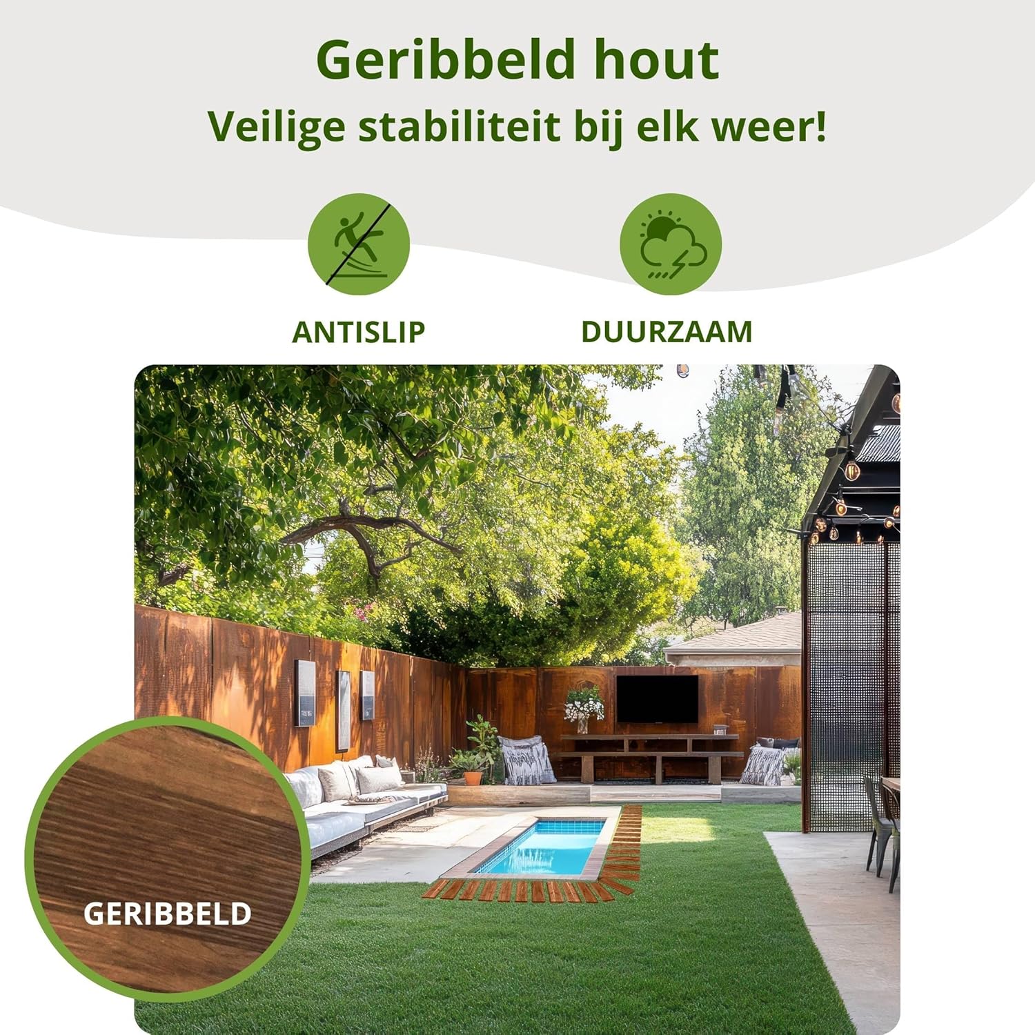 • Non-slip: Thanks to the ribbed non-slip structure, the wooden pad is perfect as garden ramps, wooden tiles or patio sections made of wood. Also safe in rain – ideal as a garden stage, outdoor walkway or wooden garden path.
