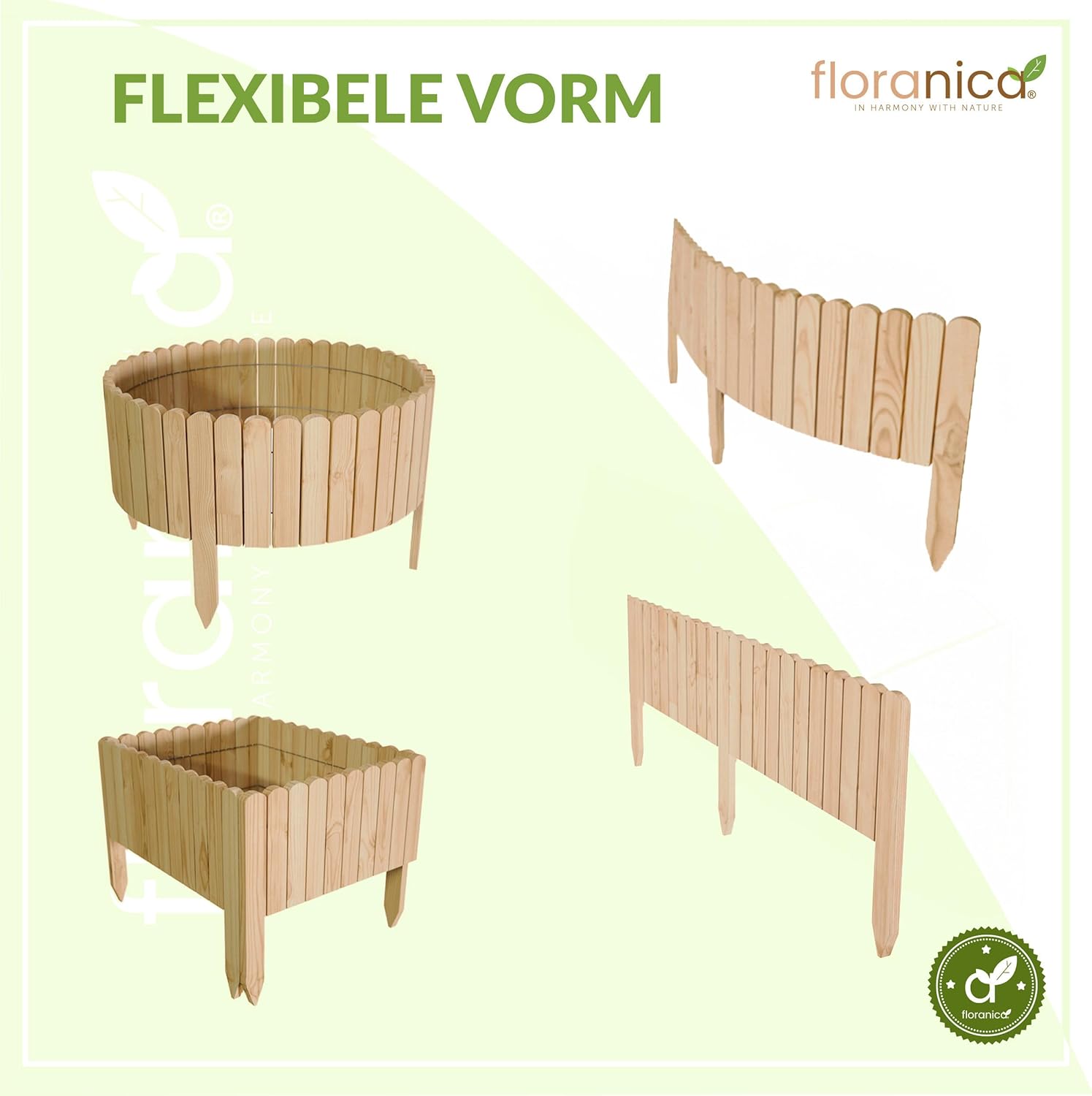Floranica Rollborder Flexible Wooden Fence 100x10cm Nature Pine Wood Garden Bed Border Bed Edge Decoration for Garden Fence Lawn Edge Fence Garden Fence for Lawns